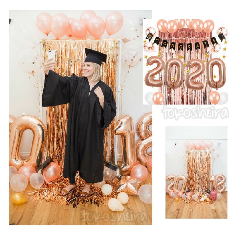 Paket Balon Dekorasi Pesta Wisuda Graduation Rose Gold Balon Angka Jumbo 80cm Selempang Graduate Shopee Indonesia